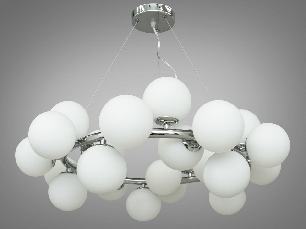 Кольори: Срібло, чорний, білий; Діаметр: 65 см; Висота: 115 см; Кількість ламп: 25 шт; Цоколь: G9;